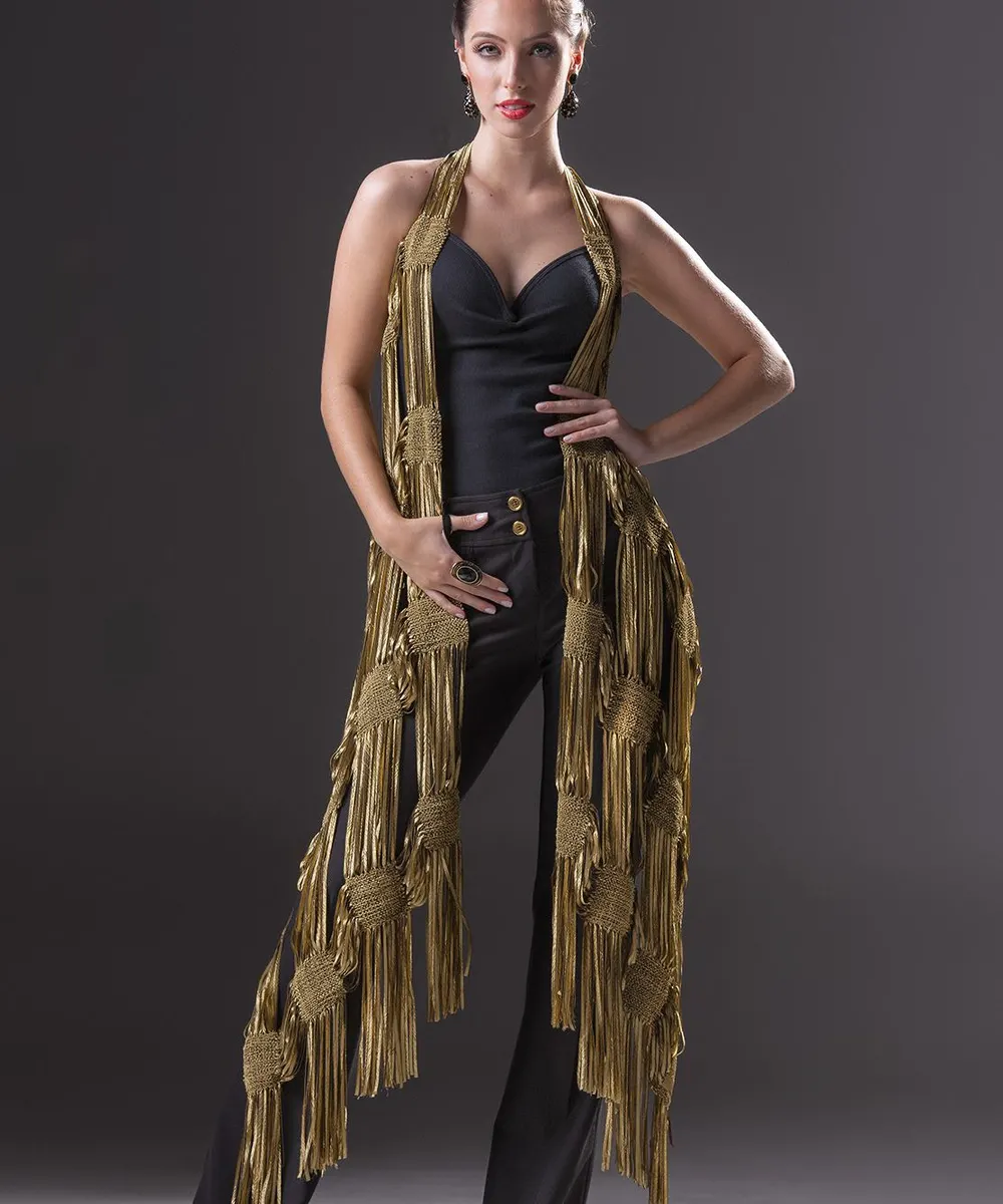 Produzida com a fita Starget, de toque sedoso e textura leve, a echarpe envolve com suavidade, proporcionando conforto e movimento ao visual. O detalhe em medalhão, cuidadosamente trabalhado, acrescenta charme e identidade à peça, reforçando seu caráter artesanal e exclusivo.