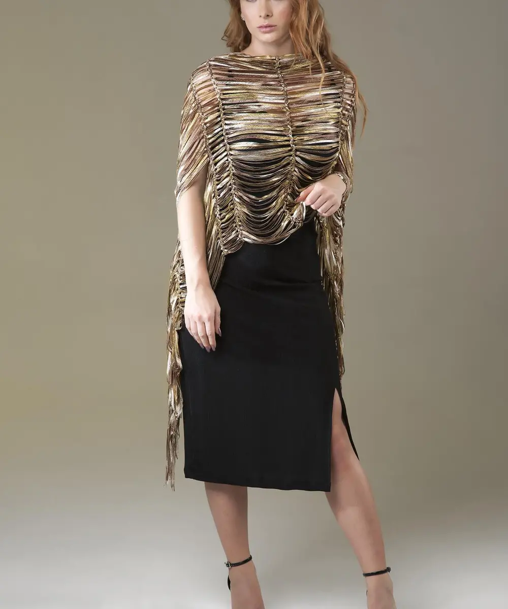 Produzida com a fita Starget, reconhecida por seu toque macio e fluidez elegante, a pelerine se acomoda de forma natural sobre o corpo, criando um caimento leve e harmonioso. Sua estrutura permite diferentes formas de uso, tornando-se um complemento versátil para composições que pedem charme sem excessos.