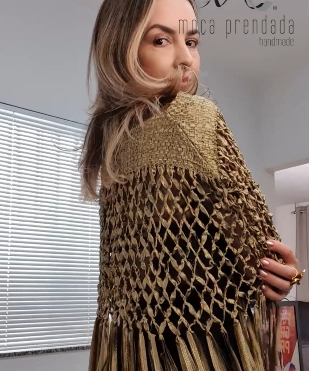 - Pelerine artesanal confeccionada em tear manual
