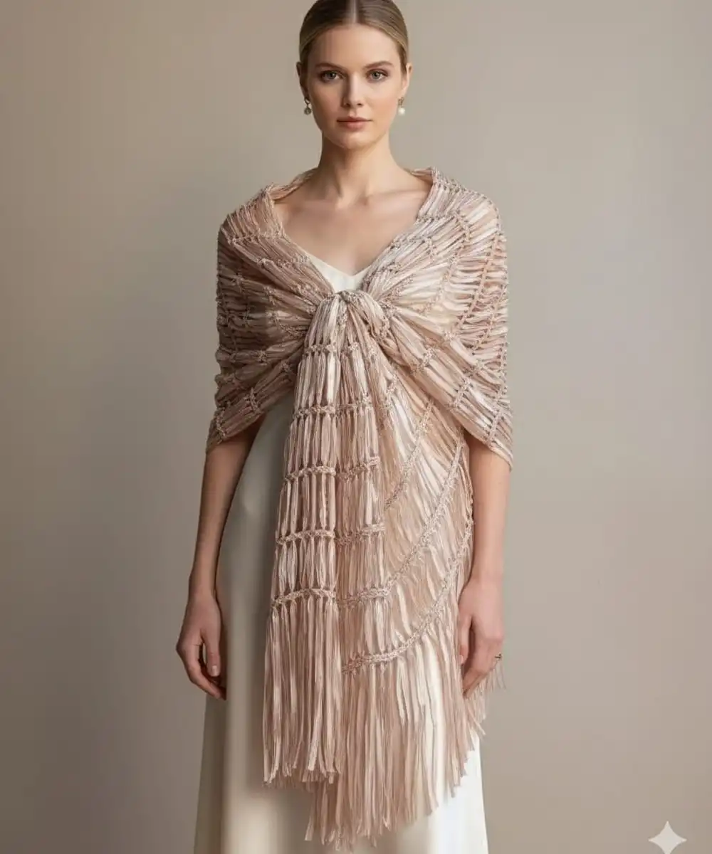 Produzida com fita Starget, reconhecida pela maciez e toque sedoso, essa echarpe proporciona uma experiência agradável ao vestir, sendo ideal para quem busca leveza sem abrir mão de estilo. Seu design minimalista e arejado torna a peça extremamente versátil, perfeita para composições que atravessam diferentes estações e ocasiões.